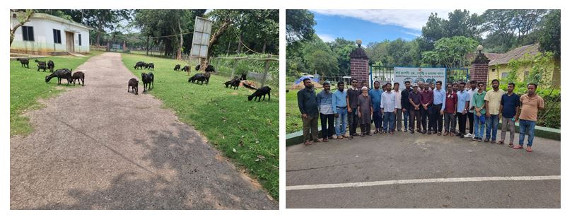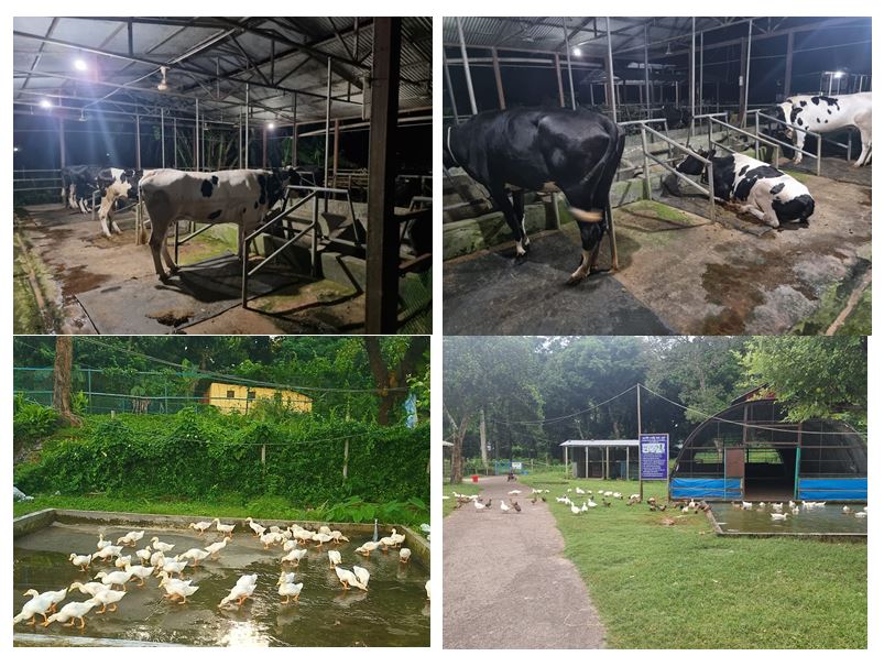 ছাগলঃ স্বল্প ও মাঝারি পুজির মাধ্যমে আয়বর্ধন ও দারিদ্র্য হ্রাস করণের লক্ষ্যে একটি ছোট আকারের ব্ল্যাক বেঙ্গল ছাগলের খামার গড়ে তোলা হয়েছে। খামারে ব্ল্যাক বেঙ্গল জাতের মোট ৩২টি ছাগল রয়েছে, এর মধ্যে বড় ছাগী ১৭টি, বড় পাঁঠা ৭টি, বাচ্চা ছাগল ৮টি (০৬ টি বাচ্চা পাঁঠা ও ০২ টি বাচ্চা ছাগী) রয়েছে। মাচা পদ্ধতিতে পরিবেশ বান্ধব ও লাভজনক উপায়ে কিভাবে ছাগল পালন করা যায় তা প্রদর্শন হচ্ছে। ছাগলগুলো সারাদিন ছেড়ে রেখে রাতের বেলা ঘরে রেখে পালন করা হচ্ছে। দৈহিক চাহিদা মত দানাদার খাদ্য দুই বেলা প্রদান করা হয়। সেই সাথে পিপিআর ভ্যাক্সিন দেওয়া হচ্ছে।